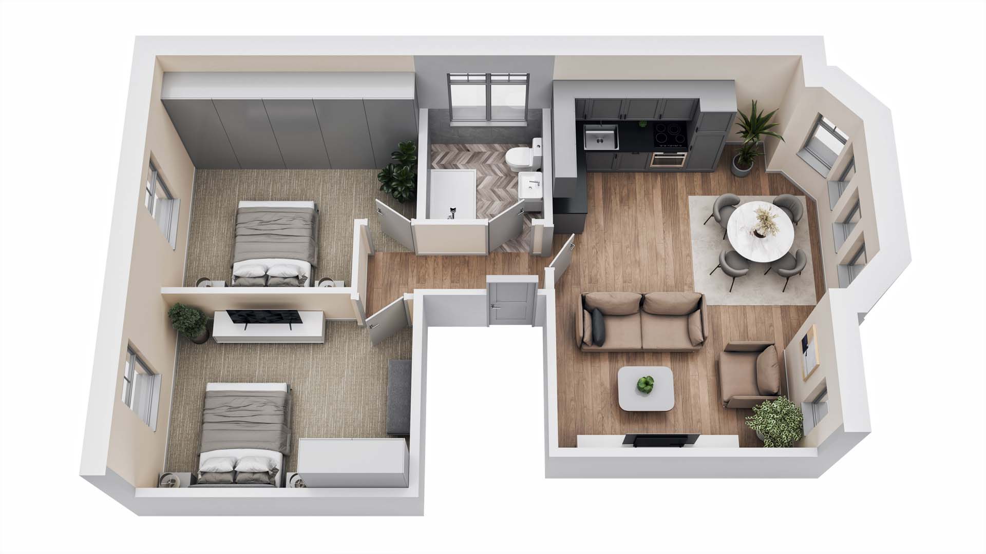 We furnish our 3D floor plans with a wide selection of stylish furniture options – from sleek modern designs to classic traditional pieces to suit any aesthetic. For unique or custom requirements, we can model bespoke furniture exactly to your specifications, ensuring the finished 3D floor plan perfectly matches your vision.