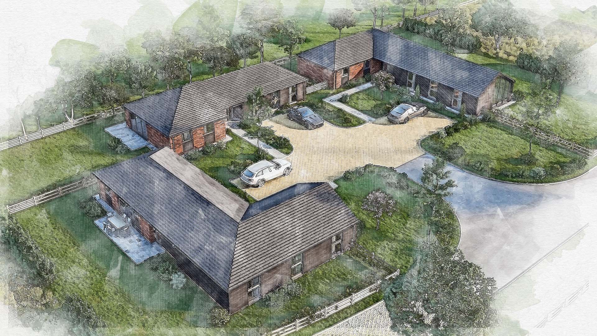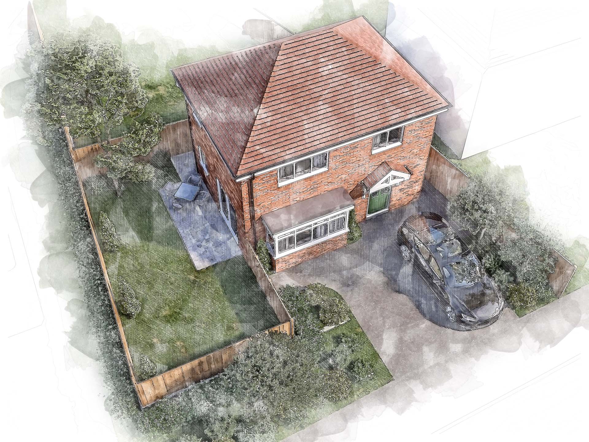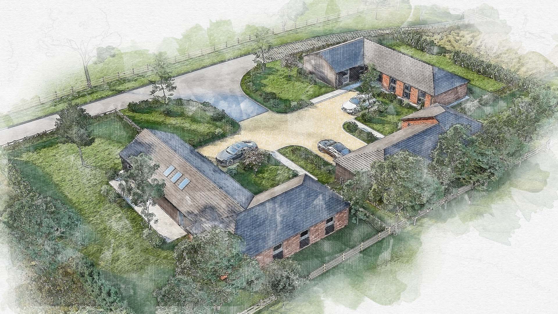 If the clean, polished look of an architectural CGI isn’t suitable, a watercolour render might be for you. Traditionally used before computer generated images became popular, some people are more drawn to the softer, more expressive feel of a watercolour style image.